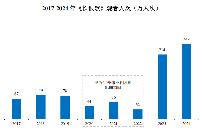 从《长恨歌》的观看人次就可见陕西旅游业绩“扛把子”的火爆程度。疫情以前的2017-2019年,《长恨歌》的观看人次为67万、79万和78万人次;疫情后的2023-2024年,《长恨歌》观看人次暴涨到214万和249万人次。